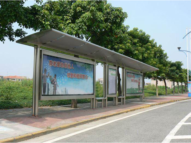 公交車候車亭一般是與公交站牌相配套的,為方便公交乘客候車時遮陽、防雨等,在車站、道路兩旁或綠化帶的港灣式公交停靠站上建設的交通設施。由于城市公交的日益發達,候車亭已發展成為城市一個不可或缺的重要組成部分,設計精美的候車亭也成為了城市一道美麗的風景。 一般候車亭棚體主要頂棚、立柱、頂弓、廣告燈箱和坐凳組成,也有用隔板來代替廣告燈箱的。