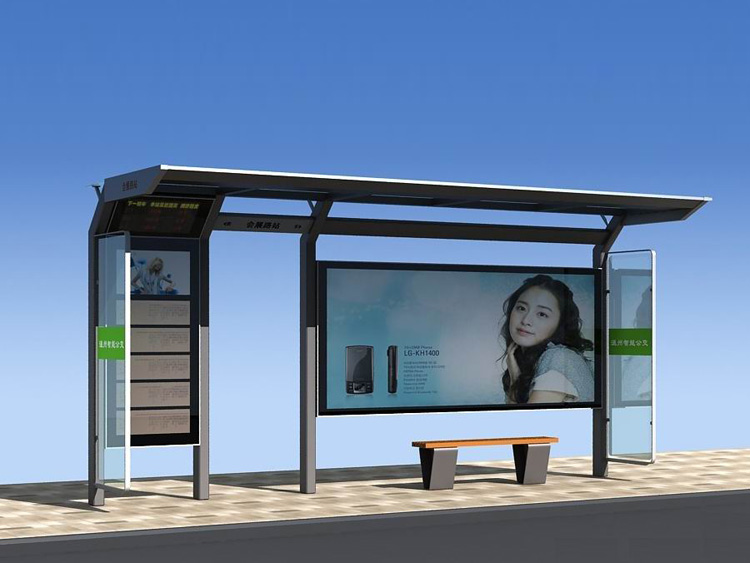 公交車候車亭一般是與公交站牌相配套的,為方便公交乘客候車時遮陽、防雨等,在車站、道路兩旁或綠化帶的港灣式公交停靠站上建設(shè)的交通設(shè)施。由于城市公交的日益發(fā)達(dá),候車亭已發(fā)展成為城市一個不可或缺的重要組成部分,設(shè)計精美的候車亭也成為了城市一道美麗的風(fēng)景。 一般候車亭棚體主要頂棚、立柱、頂弓、廣告燈箱和坐凳組成,也有用隔板來代替廣告燈箱的。