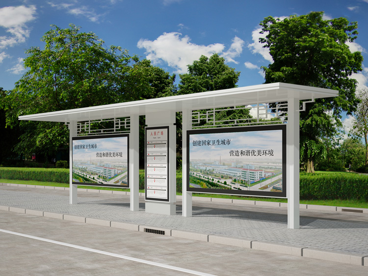 公交車候車亭一般是與公交站牌相配套的,為方便公交乘客候車時遮陽、防雨等,在車站、道路兩旁或綠化帶的港灣式公交停靠站上建設的交通設施。由于城市公交的日益發達,候車亭已發展成為城市一個不可或缺的重要組成部分,設計精美的候車亭也成為了城市一道美麗的風景。 一般候車亭棚體主要頂棚、立柱、頂弓、廣告燈箱和坐凳組成,也有用隔板來代替廣告燈箱的。