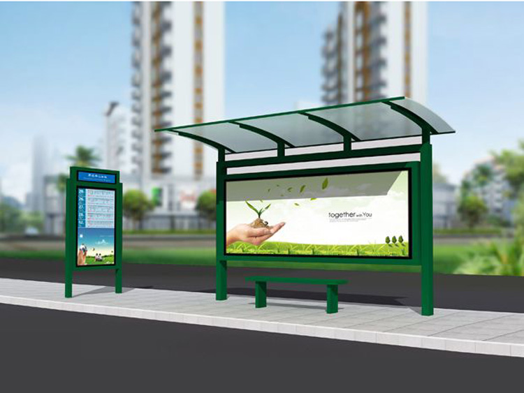 公交車候車亭一般是與公交站牌相配套的,為方便公交乘客候車時遮陽、防雨等,在車站、道路兩旁或綠化帶的港灣式公交停靠站上建設的交通設施。由于城市公交的日益發(fā)達,候車亭已發(fā)展成為城市一個不可或缺的重要組成部分,設計精美的候車亭也成為了城市一道美麗的風景。 一般候車亭棚體主要頂棚、立柱、頂弓、廣告燈箱和坐凳組成,也有用隔板來代替廣告燈箱的。