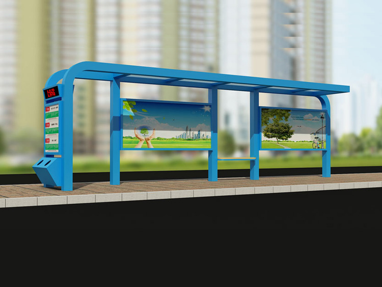 公交車候車亭一般是與公交站牌相配套的,為方便公交乘客候車時(shí)遮陽(yáng)、防雨等,在車站、道路兩旁或綠化帶的港灣式公交停靠站上建設(shè)的交通設(shè)施。由于城市公交的日益發(fā)達(dá),候車亭已發(fā)展成為城市一個(gè)不可或缺的重要組成部分,設(shè)計(jì)精美的候車亭也成為了城市一道美麗的風(fēng)景。 一般候車亭棚體主要頂棚、立柱、頂弓、廣告燈箱和坐凳組成,也有用隔板來(lái)代替廣告燈箱的。
