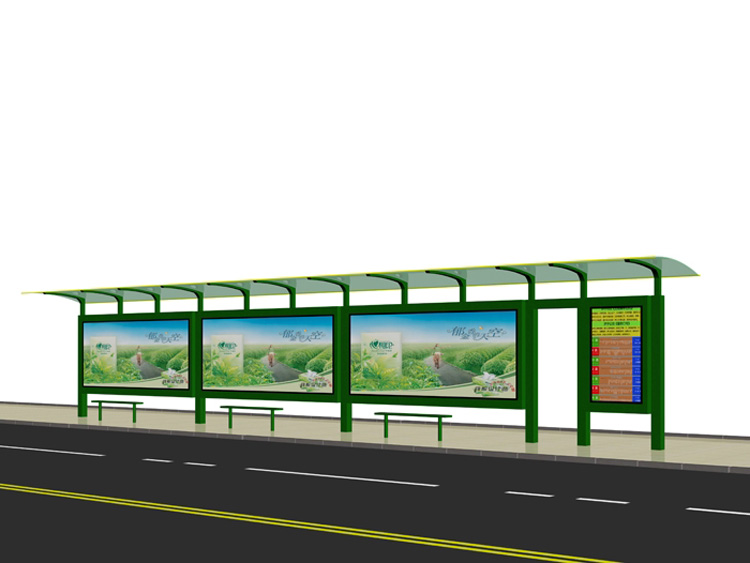 公交車候車亭一般是與公交站牌相配套的,為方便公交乘客候車時(shí)遮陽(yáng)、防雨等,在車站、道路兩旁或綠化帶的港灣式公交停靠站上建設(shè)的交通設(shè)施。由于城市公交的日益發(fā)達(dá),候車亭已發(fā)展成為城市一個(gè)不可或缺的重要組成部分,設(shè)計(jì)精美的候車亭也成為了城市一道美麗的風(fēng)景。 一般候車亭棚體主要頂棚、立柱、頂弓、廣告燈箱和坐凳組成,也有用隔板來(lái)代替廣告燈箱的。