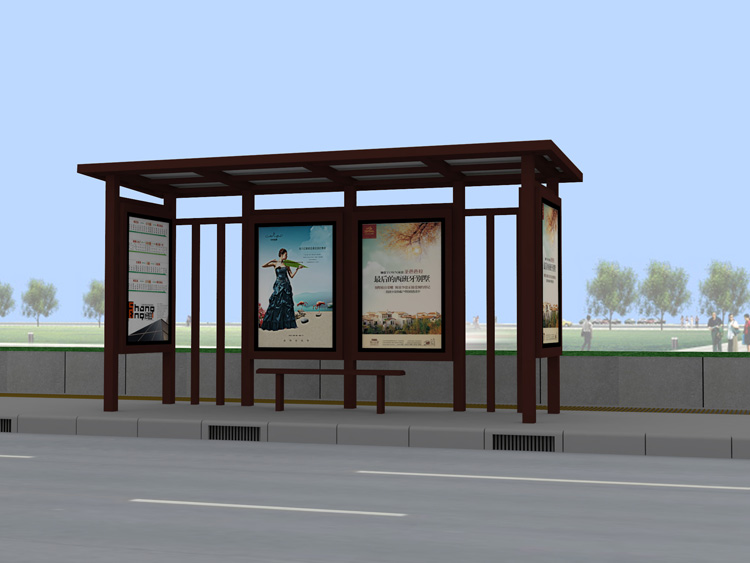 公交車候車亭一般是與公交站牌相配套的,為方便公交乘客候車時遮陽、防雨等,在車站、道路兩旁或綠化帶的港灣式公交停靠站上建設的交通設施。由于城市公交的日益發達,候車亭已發展成為城市一個不可或缺的重要組成部分,設計精美的候車亭也成為了城市一道美麗的風景。 一般候車亭棚體主要頂棚、立柱、頂弓、廣告燈箱和坐凳組成,也有用隔板來代替廣告燈箱的。