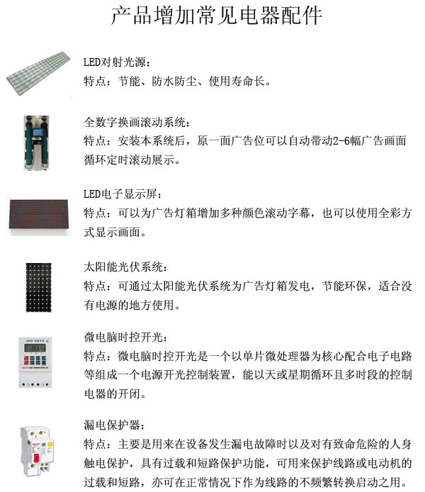 我公司專業(yè)生產(chǎn)公交站臺、候車亭、不銹鋼公交候車亭、鋁合金公交候車亭、仿古候車亭、公共自行車棚、公共自行車亭、自行車服務(wù)亭、出租車的士亭、公交電子站牌、宣傳欄燈箱、閱報欄燈箱、崗?fù)ぁ⒅嘎放啤⒙访茻粝洹ED滾動燈箱、廣告垃圾箱、戶外大型廣告燈箱等幾十種廣告設(shè)備。