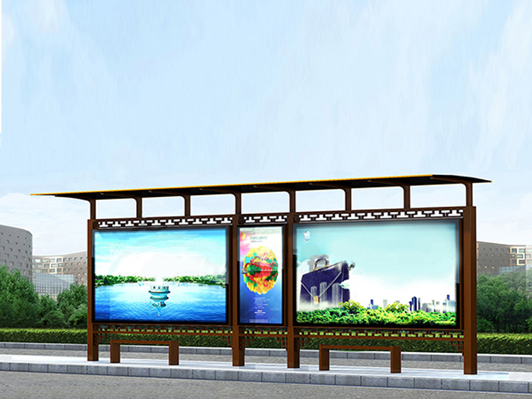 公交車候車亭一般是與公交站牌相配套的,為方便公交乘客候車時遮陽、防雨等,在車站、道路兩旁或綠化帶的港灣式公交停靠站上建設的交通設施。由于城市公交的日益發達,候車亭已發展成為城市一個不可或缺的重要組成部分,設計精美的候車亭也成為了城市一道美麗的風景。 一般候車亭棚體主要頂棚、立柱、頂弓、廣告燈箱和坐凳組成,也有用隔板來代替廣告燈箱的。