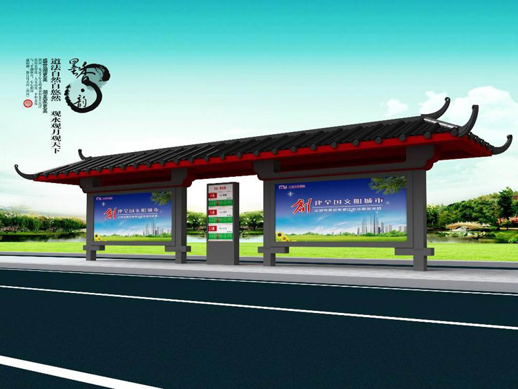 公交車候車亭一般是與公交站牌相配套的,為方便公交乘客候車時遮陽、防雨等,在車站、道路兩旁或綠化帶的港灣式公交?空旧辖ㄔO的交通設施。由于城市公交的日益發達,候車亭已發展成為城市一個不可或缺的重要組成部分,設計精美的候車亭也成為了城市一道美麗的風景。 一般候車亭棚體主要頂棚、立柱、頂弓、廣告燈箱和坐凳組成,也有用隔板來代替廣告燈箱的。