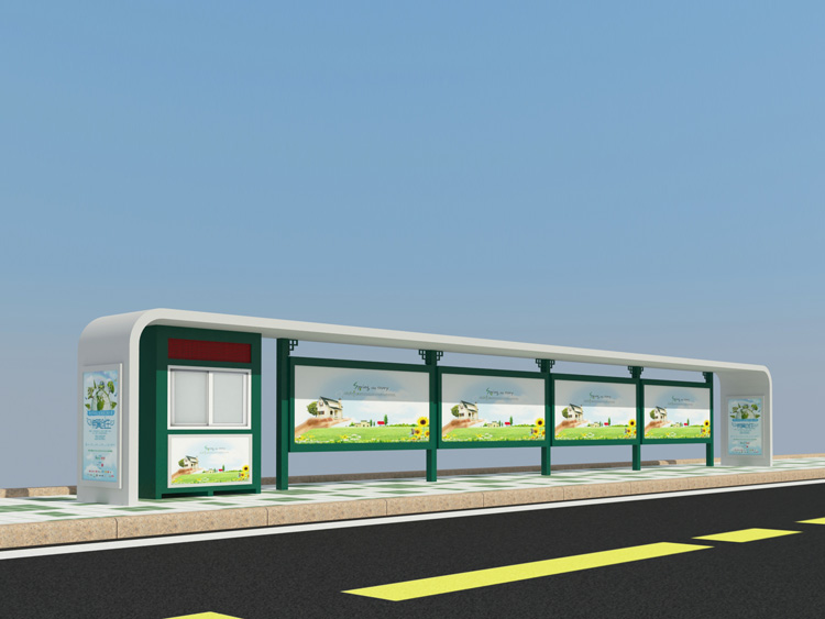 公交車候車亭一般是與公交站牌相配套的,為方便公交乘客候車時遮陽、防雨等,在車站、道路兩旁或綠化帶的港灣式公交停靠站上建設的交通設施。由于城市公交的日益發達,候車亭已發展成為城市一個不可或缺的重要組成部分,設計精美的候車亭也成為了城市一道美麗的風景。 一般候車亭棚體主要頂棚、立柱、頂弓、廣告燈箱和坐凳組成,也有用隔板來代替廣告燈箱的。
