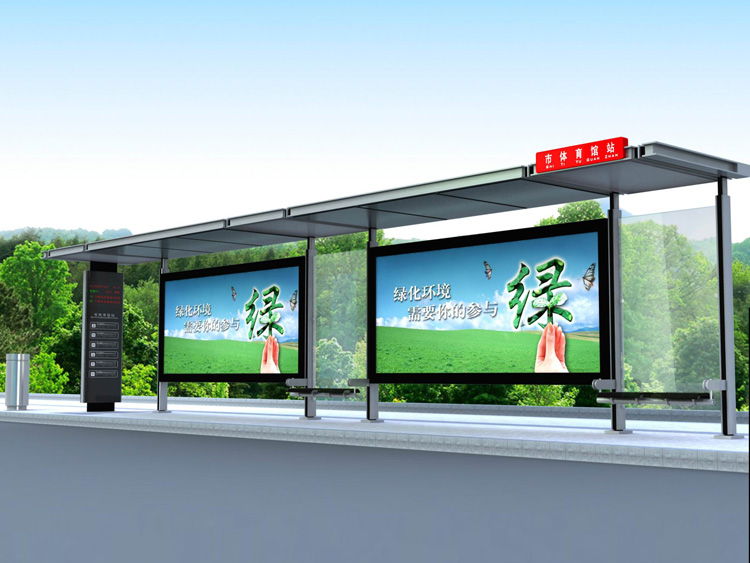 公交車候車亭一般是與公交站牌相配套的,為方便公交乘客候車時遮陽、防雨等,在車站、道路兩旁或綠化帶的港灣式公交?空旧辖ㄔO的交通設施。由于城市公交的日益發達,候車亭已發展成為城市一個不可或缺的重要組成部分,設計精美的候車亭也成為了城市一道美麗的風景。 一般候車亭棚體主要頂棚、立柱、頂弓、廣告燈箱和坐凳組成,也有用隔板來代替廣告燈箱的。