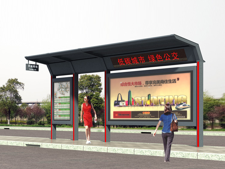 公交車(chē)候車(chē)亭一般是與公交站牌相配套的,為方便公交乘客候車(chē)時(shí)遮陽(yáng)、防雨等,在車(chē)站、道路兩旁或綠化帶的港灣式公交停靠站上建設(shè)的交通設(shè)施。由于城市公交的日益發(fā)達(dá),候車(chē)亭已發(fā)展成為城市一個(gè)不可或缺的重要組成部分,設(shè)計(jì)精美的候車(chē)亭也成為了城市一道美麗的風(fēng)景。 一般候車(chē)亭棚體主要頂棚、立柱、頂弓、廣告燈箱和坐凳組成,也有用隔板來(lái)代替廣告燈箱的。