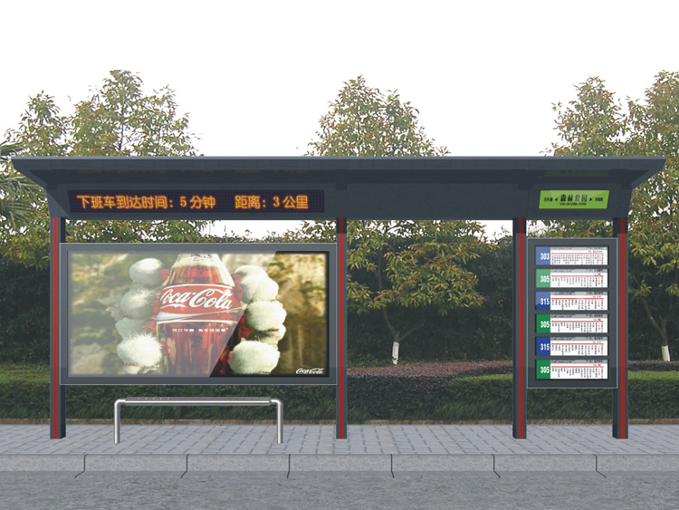 公交車候車亭一般是與公交站牌相配套的,為方便公交乘客候車時遮陽、防雨等,在車站、道路兩旁或綠化帶的港灣式公交停靠站上建設的交通設施。由于城市公交的日益發達,候車亭已發展成為城市一個不可或缺的重要組成部分,設計精美的候車亭也成為了城市一道美麗的風景。 一般候車亭棚體主要頂棚、立柱、頂弓、廣告燈箱和坐凳組成,也有用隔板來代替廣告燈箱的。