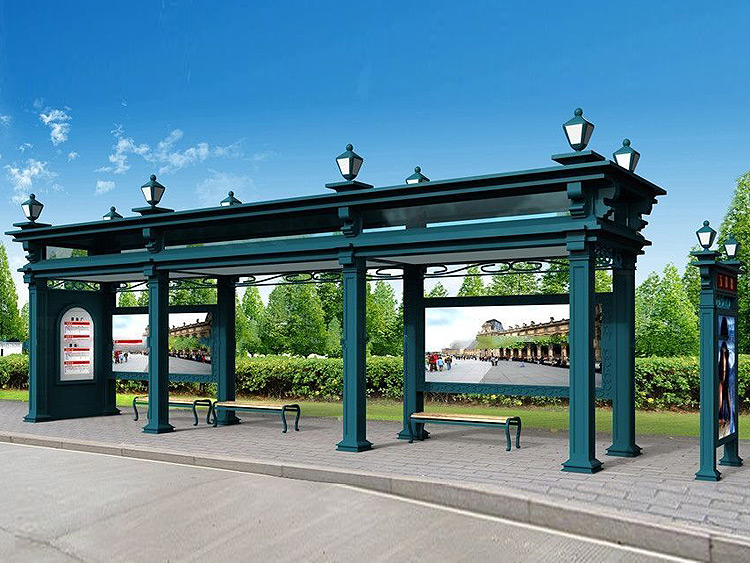 公交車候車亭一般是與公交站牌相配套的,為方便公交乘客候車時遮陽、防雨等,在車站、道路兩旁或綠化帶的港灣式公交停靠站上建設的交通設施。由于城市公交的日益發達,候車亭已發展成為城市一個不可或缺的重要組成部分,設計精美的候車亭也成為了城市一道美麗的風景。 一般候車亭棚體主要頂棚、立柱、頂弓、廣告燈箱和坐凳組成,也有用隔板來代替廣告燈箱的。