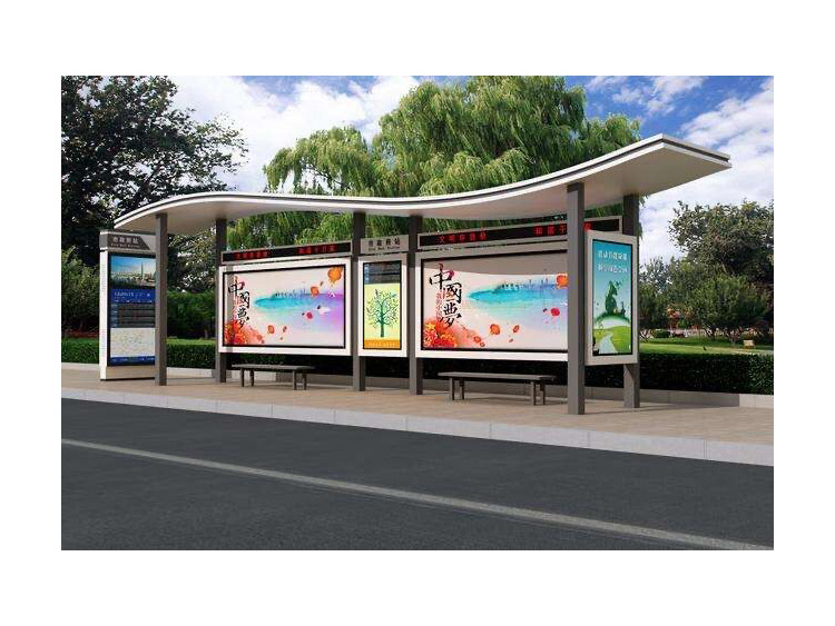 公交車候車亭一般是與公交站牌相配套的,為方便公交乘客候車時遮陽、防雨等,在車站、道路兩旁或綠化帶的港灣式公交?空旧辖ㄔO的交通設施。由于城市公交的日益發達,候車亭已發展成為城市一個不可或缺的重要組成部分,設計精美的候車亭也成為了城市一道美麗的風景。 一般候車亭棚體主要頂棚、立柱、頂弓、廣告燈箱和坐凳組成,也有用隔板來代替廣告燈箱的。